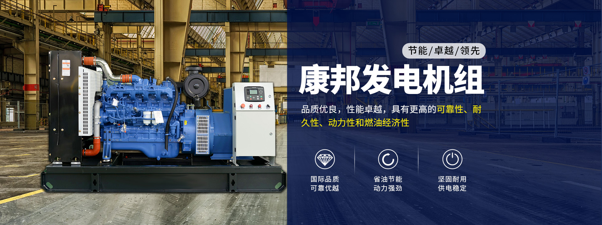 康邦生產(chǎn)的柴油發(fā)電機(jī)組所配套的動(dòng)力為玉柴、上柴、濰柴、沃爾沃、康明斯、珀金斯等國(guó)內(nèi)外知名柴油發(fā)動(dòng)機(jī)品牌,產(chǎn)品在各個(gè)方面符合國(guó)家、行業(yè)規(guī)范標(biāo)準(zhǔn)及合同規(guī)定的質(zhì)量、規(guī)格和性能要求,并通過(guò)ISO9001質(zhì)量體系認(rèn)證。